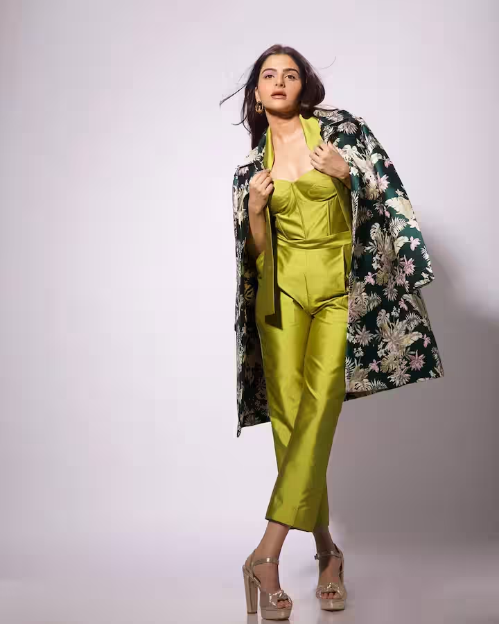 ग्रीन कॉर्सेट के साथ डार्क ग्रीन फ्लोरल ब्लेज़र पहने अवंतिका दसानी का लुक बेहद क्लासी और स्टाइलिश नजर आ रहा है.