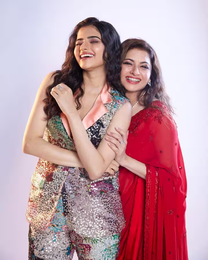 कट स्लीव्स वाले ब्लेजर के साथ मैचिंग बॉटम पहने अवंतिका बहुत जच रही हैं. इस फोटो में भाग्यश्री के साथ पोज देते हुए वो बिल्कुल अपनी मां जैसी ही दिख रही हैं.