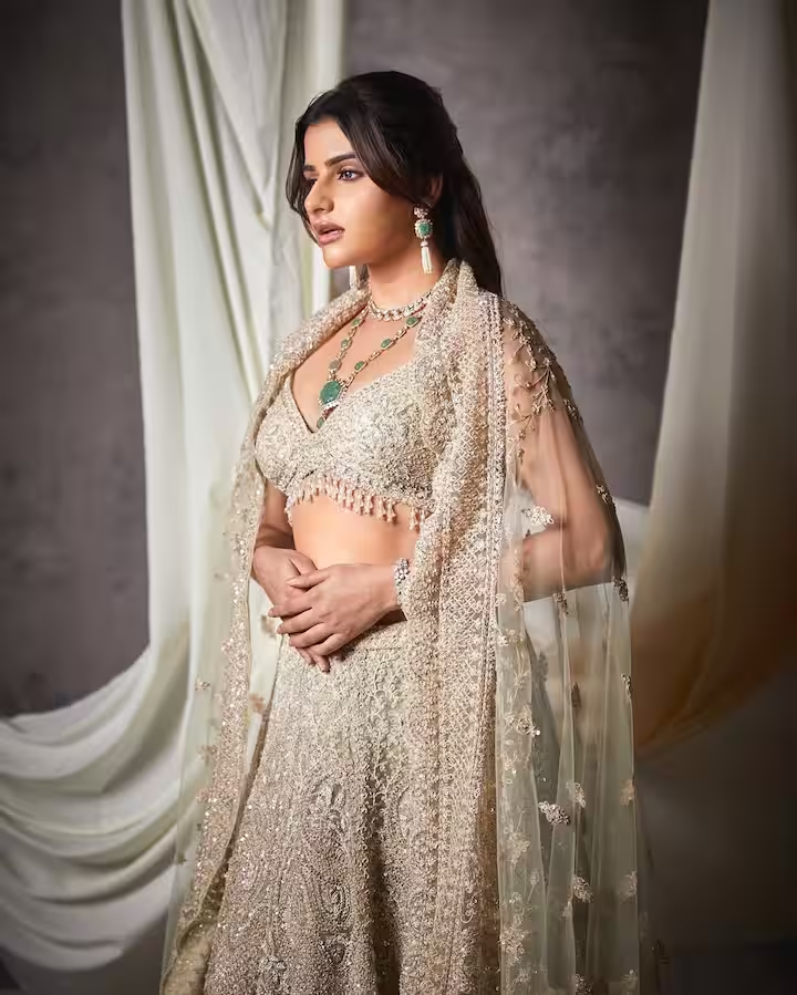 गोल्डन कलर का हैवी लहंगा पहने एक्ट्रेस बहुत हसीन दिख रही हैं. मैचिंग जूलरी उनकी खूबसूरती में इजाफा कर रहा है.