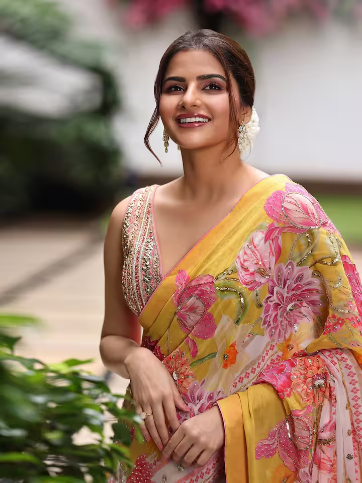 येलो फ्लोरल प्रिंटेड साड़ी के साथ अवंतिका हैवी वर्क वाला ब्लाउज पहने दिख रही हैं. बालों में गजरा लगाकर उन्होंने अपने लुक को क्लासी टच दिया है.