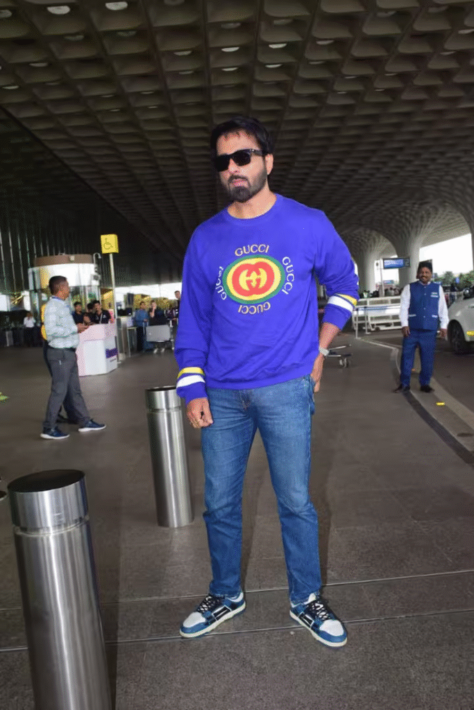 सोनू सूद का एयरपोर्ट लुक इस बार काफी स्पोर्टी और स्टाइलिश नजर आया। उन्होंने ब्लू गुच्ची स्वेटशर्ट के साथ ब्लू डेनिम जींस पहनी थी। उनके ब्लू-व्हाइट स्नीकर्स और ब्लैक सनग्लासेस ने इस लुक को कूल और ट्रेंडी टच दिया है।