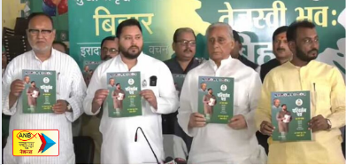 घोषणापत्र जारी करते हुए तेजस्वी यादव, मुकेश सहनी, पवन खेड़ा, अखिलेश प्रसाद सिंह सहित अन्य नेताओं ने कहा कि यह प्रण पत्र बिहार के हर नागरिक के जीवन को सम्मानजनक और सशक्त बनाने का वादा है।