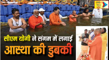 सीएम योगी ने संगम में तीन बार लगाई डुबकी